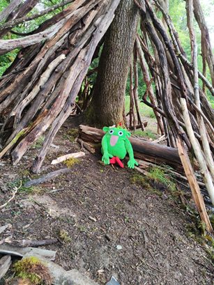 So verging die Zeit wie im Flug, sodass wir am frühen Abend in die Grillhütte am Waldrand umzogen. Der Grill wurde entzündet, es gab Würstchen und leckere Salate, immer wieder unterbrochen von spannenden Exkursionen der Kinder in den Wald (in Sichtweite der Erwachsenen). Stöcke sammeln, gemeinsam ein Tipi aus großen Ästen bauen, ab und zu mal ins Brot oder die Grillwurst beißen? Was will man mehr?
